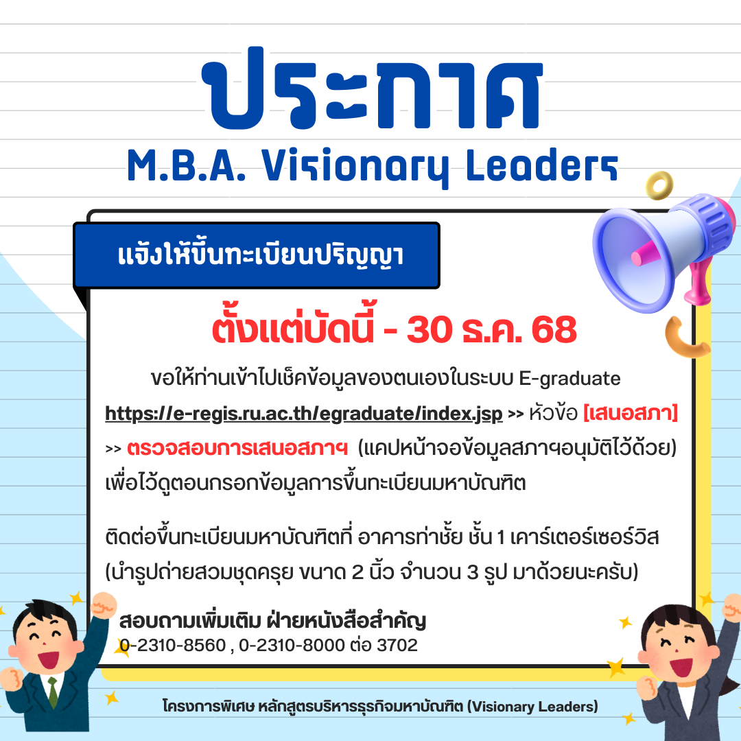 บัดนี้ ขอให้ท่านเข้าไปเช็คข้อมูลของตนเองในระบบ egraduate https://e-regis.ru.ac.th/egraduate/index.jsp >> หัวข้อ [เสนอสภา] >> ตรวจสอบการเสนอสภาฯ