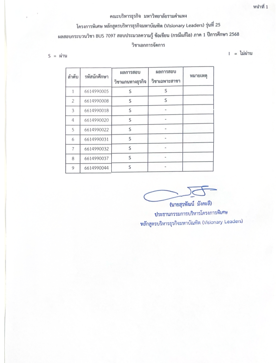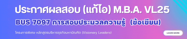 Visionary Leaders RU ผลสอบ VL รุ่น 25 06 October 2025 Hits: 65 ประกาศผลสอบ (แก้ไอ) BUS 7097 การสอบประมวลความรู้ (ข้อเขียน) Please Rate Vote 1 Vote 2 Vote 3 Vote 4 Vote 5 สอบถามเพิ่มเติม : 02-3108900 , 0816457865 Next article: ประกาศผลสอบ BUS 7097 การสอบประมวลความรู้ (ข้อเขียน) Next