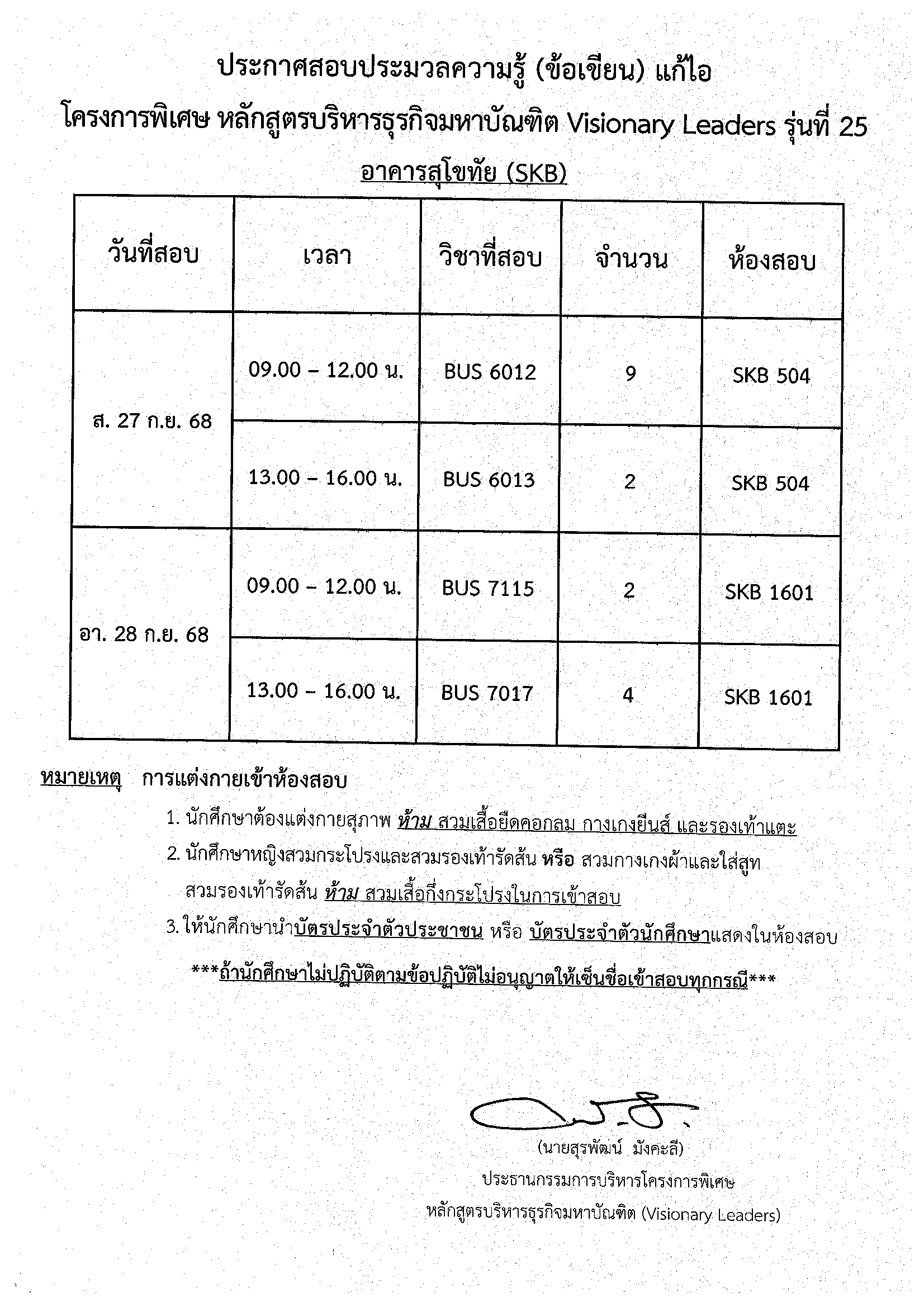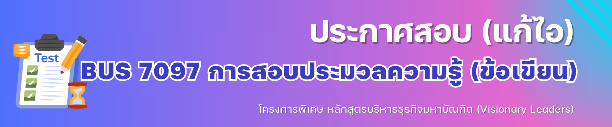 Visionary Leaders RU ห้องสอบ รุ่น 25 13 September 2025 Hits: 25 ประกาศสอบ (แก้ไอ) BUS 7097 การสอบประมวลความรู้ (ข้อเขียน) Please Rate Vote 1 Vote 2 Vote 3 Vote 4 Vote 5 สอบถามเพิ่มเติม : 02-3108900 , 081-6457865 Next article: ประกาศห้องสอบ (BUS 7097) การสอบประมวลความรู้ (ข้อเขียน) Next