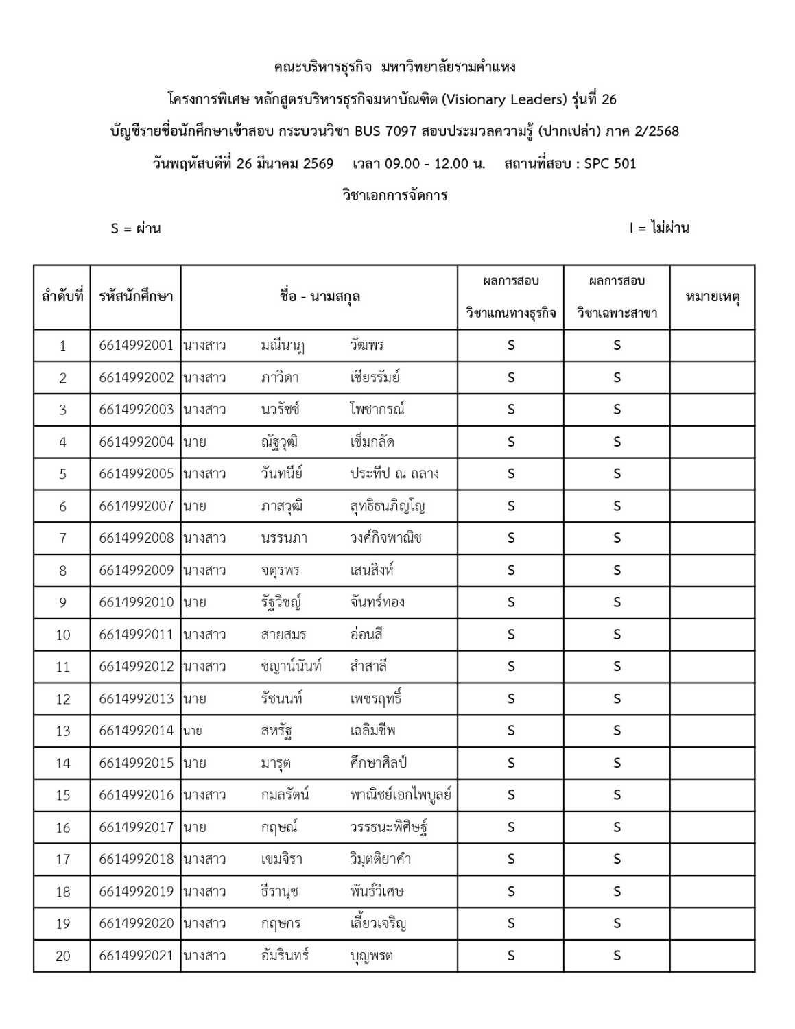 Visionary Leaders RU ห้องสอบ รุ่น 26 21 March 2026 Hits: 137 ประกาศรายชื่อนักศึกษาเข้าสอบ BUS 7097 การสอบประมวลความรู้ (ปากเปล่า) รุ่นที่ 26 Please Rate Vote 1 Vote 2 Vote 3 Vote 4 Vote 5 สอบถามเพิ่มเติม : 02-3108900 , 081-6457865 Next article: ประกาศสอบ (แก้ไอ) BUS 7097 การสอบประมวลความรู้ (ข้อเขียน) Next
