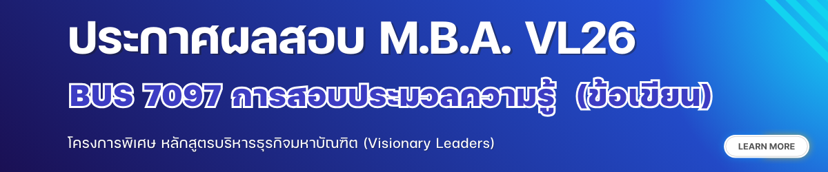 Visionary Leaders RU ผลสอบ VL รุ่น 26 24 February 2026 Hits: 87 ประกาศผลสอบ BUS 7097 การสอบประมวลความรู้ (ข้อเขียน) User Rating: 5 / 5 Please Rate Vote 1 Vote 2 Vote 3 Vote 4 Vote 5 สอบถามเพิ่มเติม : 02-3108900 , 081-6457865 Previous article: ประกาศผลสอบ (แก้ไอ) BUS 7097 การสอบประมวลความรู้ (ข้อเขียน) Prev Next article: ประกาศผลสอบ วิชา BUS 7096 การค้นคว้าอิสระ Next