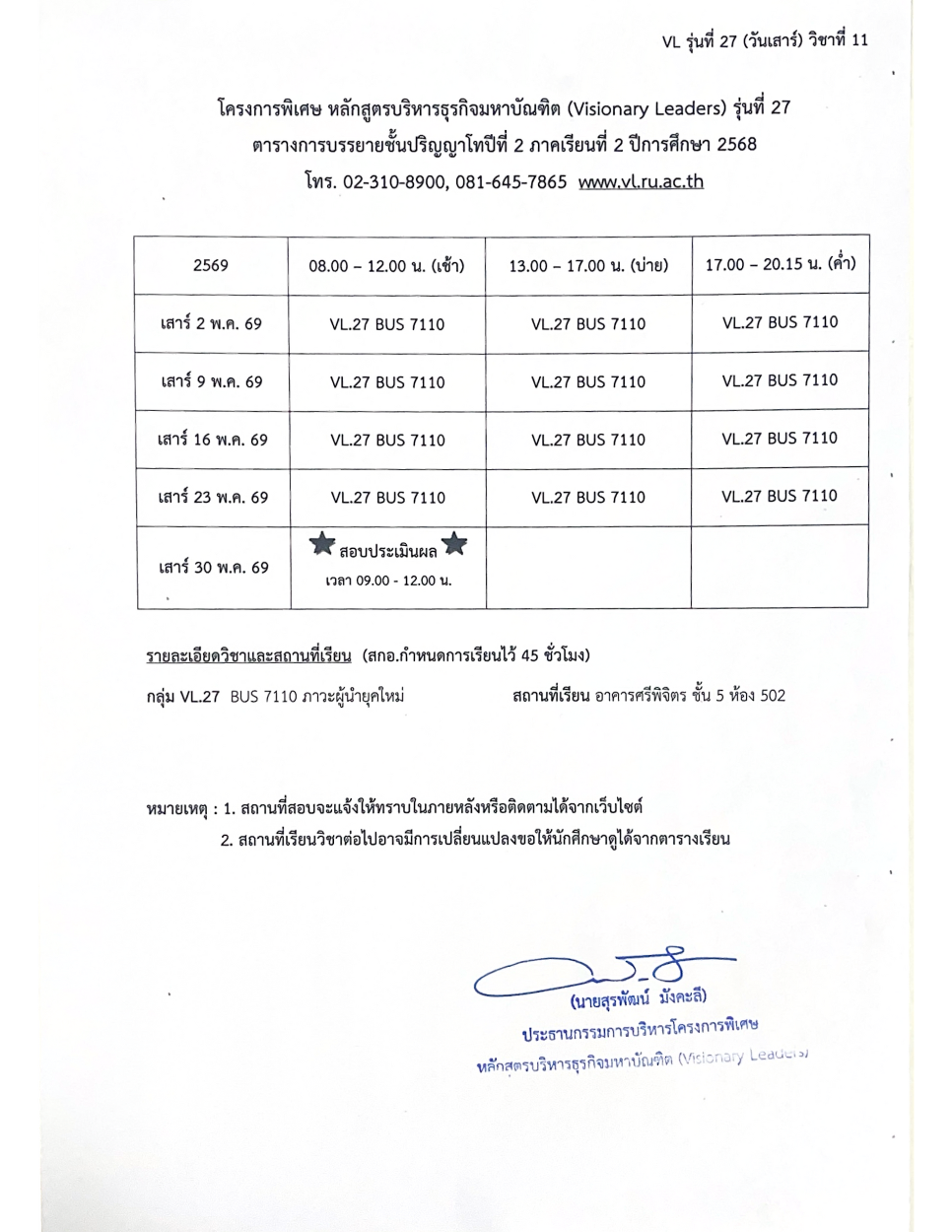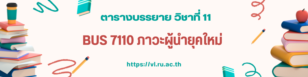 Visionary Leaders RU ตารางบรรยาย VL รุ่น 27 29 November 2025 Hits: 4 ตารางบรรยาย วิชาที่ 11 (BUS 7110) Please Rate Vote 1 Vote 2 Vote 3 Vote 4 Vote 5 สอบถามเพิ่มเติม : 02-3108900 , 081-6457865 Previous article: ตารางบรรยาย วิชาที่ 12 (BUS 7111) Prev Next article: ตารางบรรยาย วิชาที่ 10 (BUS 7100) Next