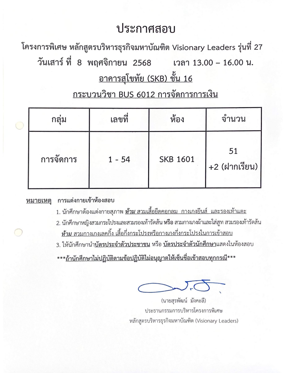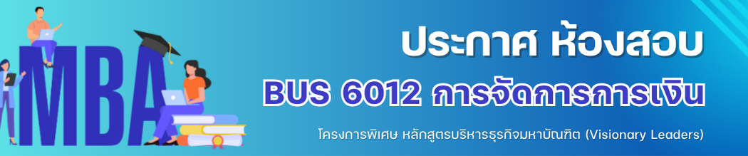 Visionary Leaders RU ห้องสอบ รุ่น 27 02 November 2025 Hits: 19 ประกาศสอบ วิชา BUS 6012 การจัดการการเงิน Please Rate Vote 1 Vote 2 Vote 3 Vote 4 Vote 5 สอบถามเพิ่มเติม : 02-3108900 , 081-6457865 Previous article: ประกาศสอบ วิชา BUS 6013 การจัดการการตลาด Prev Next article: ประกาศสอบ วิชา BUS 6017 การบัญชีสำหรับการบริหาร Next