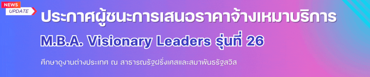 Visionary Leaders RU ประกาศผู้ชนะ 09 October 2025 Hits: 136 ประกาศผู้ชนะการเสนอราคา ประกวดราคาจ้างเหมาบริการโครงการศึกษาดูงานต่างประเทศ สำหรับนักศึกษาโครงการพิเศษ หลักสูตรบริหารธุรกิจมหาบัณฑิต (Visionary Leaders) รุ่นที่ 26 ณ สาธารณรัฐฝรั่งเศสและสมาพันธรัฐสวิส ด้วยวิธีประกวดราคาอิเล็กทรอนิกส์ (e-bidding) Please Rate Vote 1 Vote 2 Vote 3 Vote 4 Vote 5 >>> รายละเอียดเพิ่มเติม <<< ติดต่อสอบถามเพิ่มเติม : 02 - 3108900 , 081 - 6457865